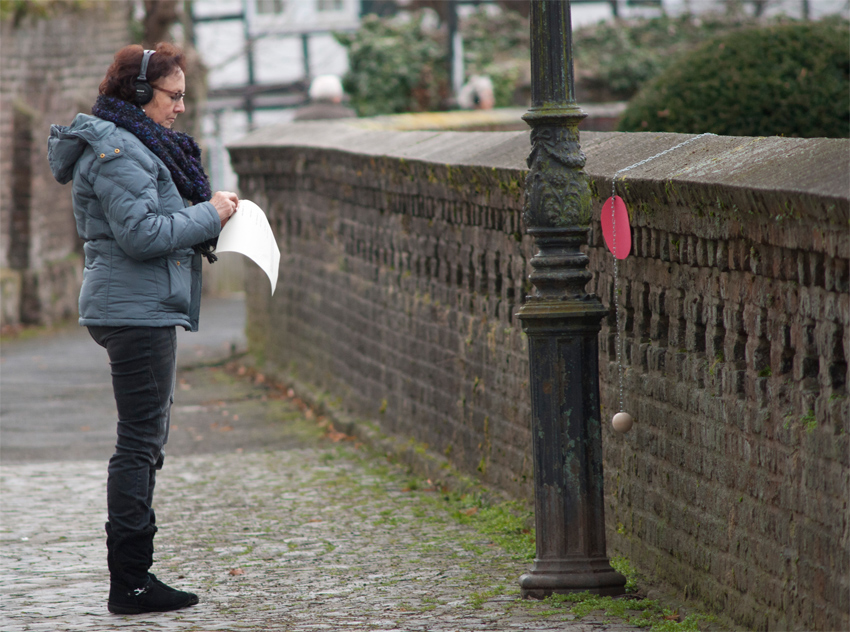 „Ich möchte den Besucher mit den Ohren sehen lassen. Bücken wir uns und schauen durch unsere eigenen Beine auf die Welt. Sie steht Kopf, alles ist verkehrt.“ sagt Annebarbe Kau über ihrer Klangcollage in Bonn Vilich. Und in ihrem Kopfstand, den man gehend, sehend und hörend erleben kann, zeigt sich uns tatsächlich eine Perspektive auf den lange herbeigesehnter Frühling.