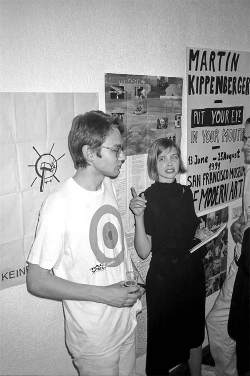 Merlin Carpenter und Isabelle Graw in der Galerie Christian Nagel, anlässlich der Eröffnung von Clegg & Guttmann, Köln, 06.09.1991