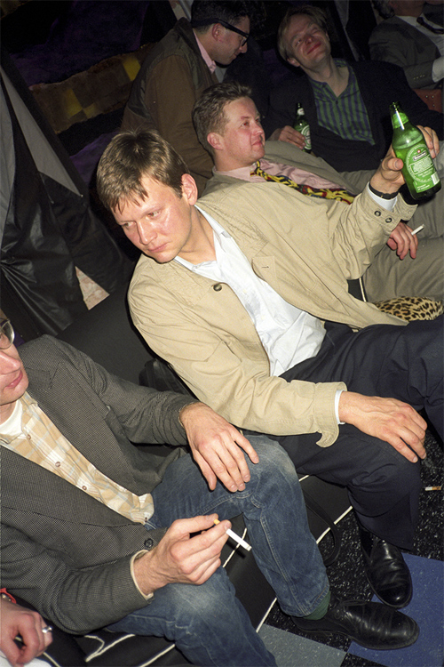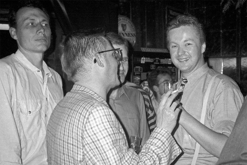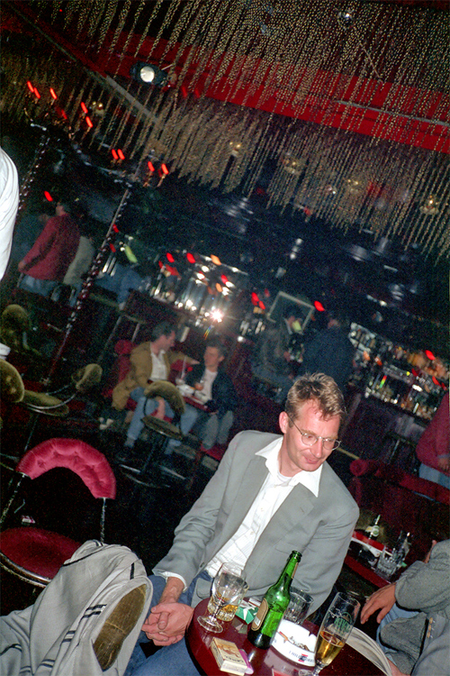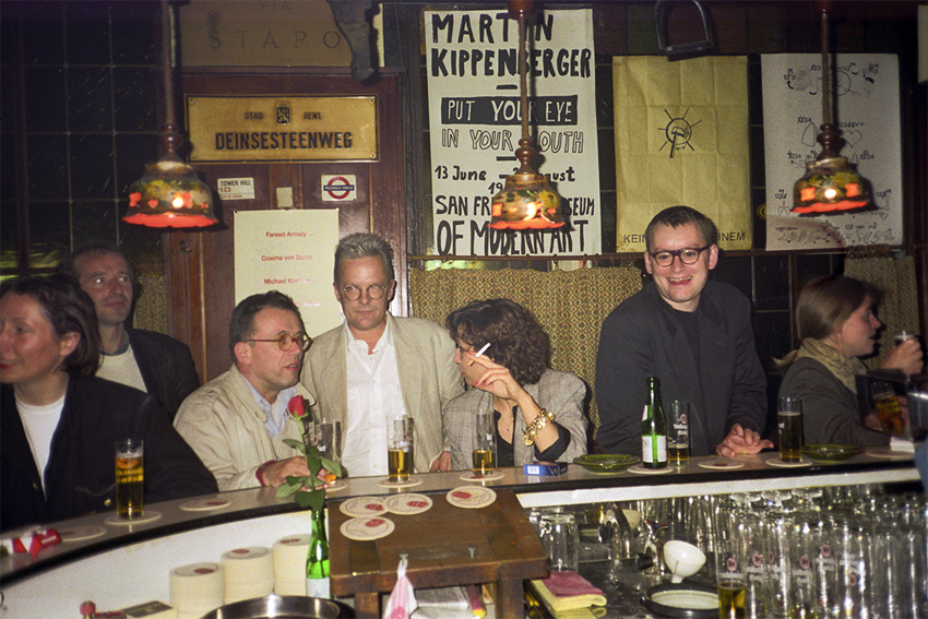 Stephan Dillemuth im „Babaloo Café“ nach der Ausstellungseröffnung „Friesenwall 120“ im K-raum Daxer, München, 04.09.1991