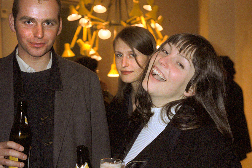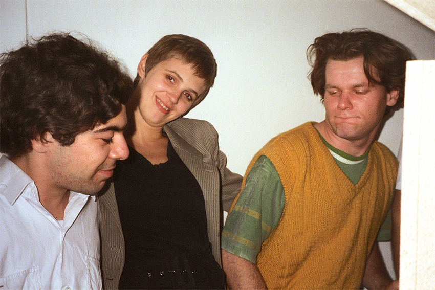 Florian Hüttner, Katharina Jacobsen und Cathy Skene während der Ausstellungseröffnung von Yvonne Parent, Galerie Achim Kubinski, Köln, 26.03.1993