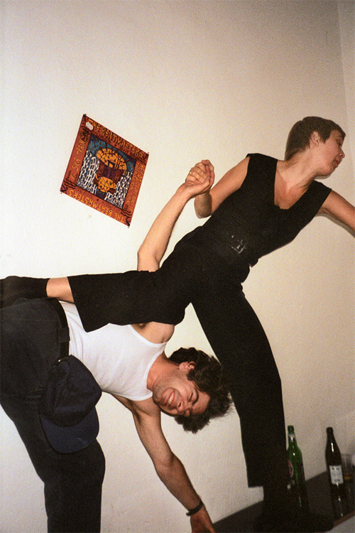 Artikelbild: Patricia Schwarz und Martin Kippenberger während der Präsentation der LP „Avoidance“, Edition Patricia Schwarz u. Artelier, Frankfurt, 01.10.1992