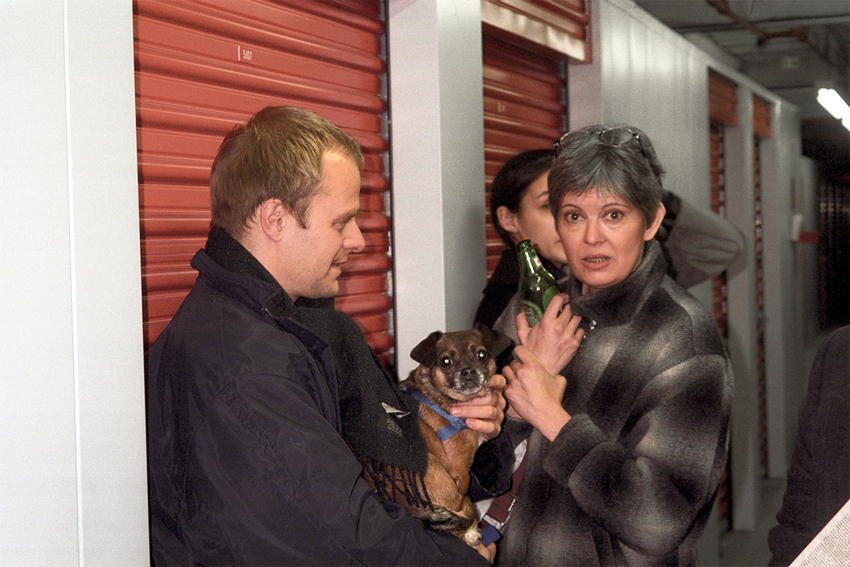 Friedrich Petzel, Shorty und Louise Lawler bei der Ausstellungseröffnung von Dirk Westphal im New York Security Mini-Storage, New York, 26.02.1994