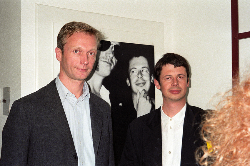 Billy Clüver und Martin Guttmann während der Eröffnung von Clegg & Guttmann in der Galerie Christian Nagel, Köln, 06.09.1991