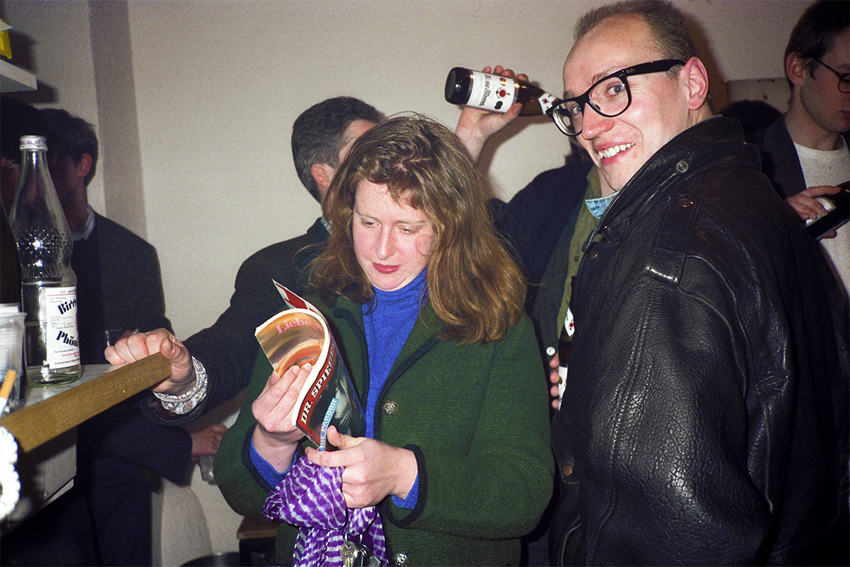 Esther Schipper und Wolfram Aue während der Eröffnung von Nils Norman im Friesenwall 120, Köln, 23.04.1991