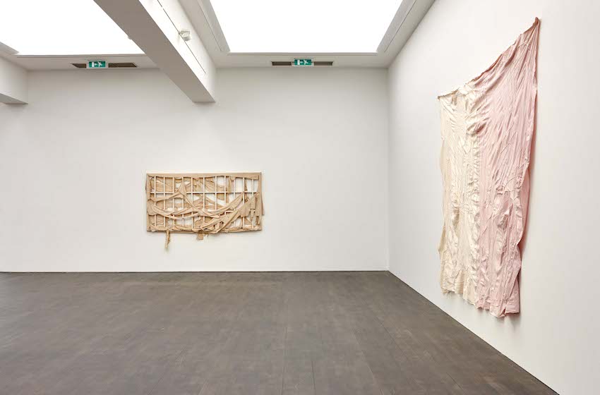 Während der Ausstellung When Attitudes Become Form zeigte Buthe sein Weißes Bild von 1969. Es bestand aus einem Holzgitter, an dem weiße Stofffetzen hingen. Und bereits hier in diesem Bild, obwohl es noch der konzeptuellen Strategie verpflichtet war, kündigte sich bereits etwas an, das Buthe bald von den klassischen konzeptuellen Künstlern unterscheiden und was anschließend sein gesamtes Werk prägen sollte: sein Umgang mit Material. Buthe suchte nicht mehr die Wahrheit in dem, was das Material repräsentiert – wie die konzeptuelle Kunst -, sondern in der Beschaffenheit und der Konfiguration des Materials selbst. Die Retrospektive beginnt daher mit solchen Stoffbildern, die zwischen 1969 und 1970 entstanden sind, und die bereits seine „Materialbessesenheit“ ankündigen. Danach, Anfang der 70 Jahre geht Buthe auf Reisen. Er bereist Nordafrika, Iran und Afghanistan. Und diese Reisen ändern alles. Denn die Konfrontation mit außereuropäischen Kulturen, bestätigt ihn nicht nur in seinem Umgang mit Materialien wie Stoff oder Holz. Er entdeckt auf diesen Reisen auch die visuelle Kraft des Ornaments und der Farbe und, was für sein weiteres Schaffen entscheidend wird, den kultischen, den rituellen und den heilenden Aspekt der Kunst.