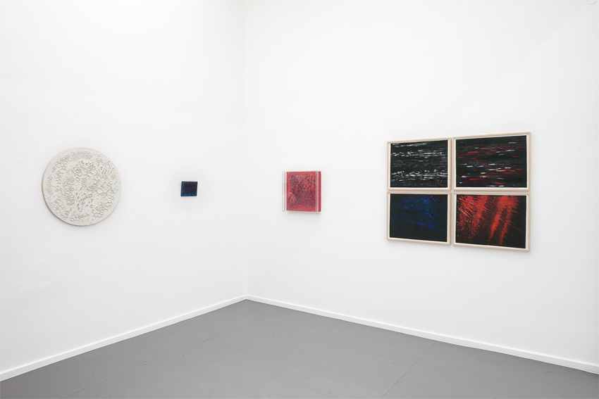 Hier zu sehen sind mehrere konstruktive Werkgruppen aus den Jahren um 1954, als die damals 20-jährige Mary Bauermeister an der Hochschule für Gestaltung in Ulm bei Max Bill studierte. Geometrische Formen, wie Spiralen oder Quadrate in gelb und lila, sind in berechenbaren Verhältnissen auf der Fläche angeordnet. „Ich hätte auch Mathematikerin werden können, oder Musikerin“, sagt Bauermeister heute. 1934 in Frankfurt am Main geboren, verließ sie das Gymnasium in Köln-Kalk ohne Abitur. Dass sie sich damals gegen ein Mathematikstudium entschied, so wie ihr Vater Wolf Bauermeister, Professor für Anthropologie und Genetik, es wollte, heißt nicht, dass sie sich die Mathematik nicht für ihre Arbeit zunutze machte.