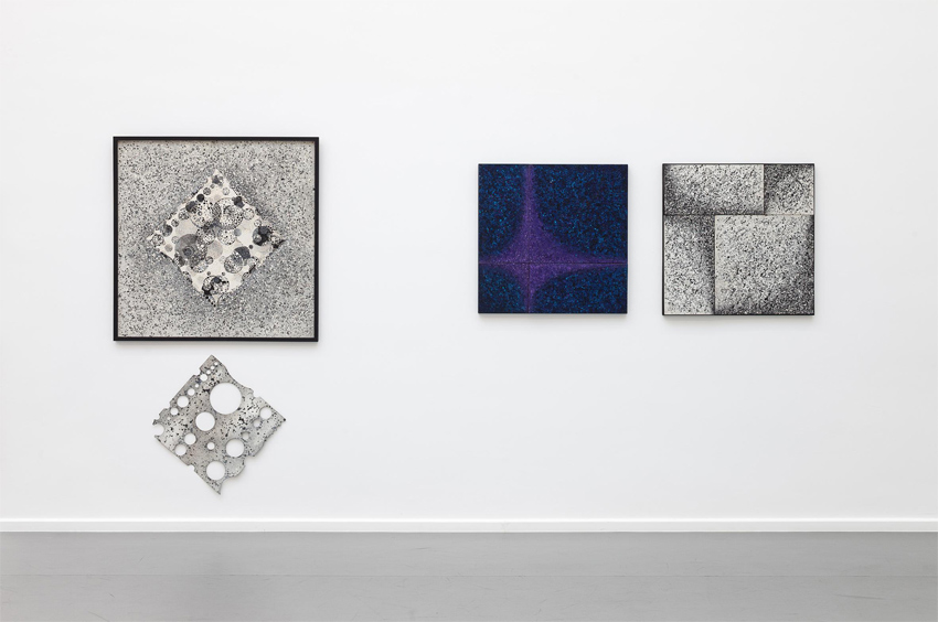 Um 1959 entstehen die malerischen Konzeptionen, die auch in Düren zu sehen sind. Fein gepunktet, in schwarz und weiß, wirkt die Serie der Magnetbilder auf den ersten Blick den Drippings Jackson Pollocks nicht unähnlich. Das zugrunde liegende Prinzip ist jedoch ein völlig anderes: die präzise gemalten Pünktchen lassen sich auf durch die variablen Bildträgern zu verschiedenen Kompositionen zusammen bauen – ohne dabei eine Ausgewogenheit der Elemente zueinander einzubüßen. So versucht Bauermeister die Möglichkeiten serieller Malerei zu beschreiben. Karlheinz Stockhausen schildert hierzu in einem Text für Bauermeisters Ausstellung im Amsterdamer Stedelijk-Museum 1962 die Vorgänge bei einem Kompositionskurs in Darmstadt: „Sie (Bauermeister) zeigte zum Erstaunen der Komponisten, daß in ihren Arbeiten die gleichen kompositorischen Probleme, die für die gegenwärtigen musikalische Komposition maßgebend sind, zu neuen optischen Erfindungen und Entdeckungen führen.“ Gemeint ist die Übertragung der Kompositionstechnik der seriellen Musik auf die bildende Kunst – und andersrum.
