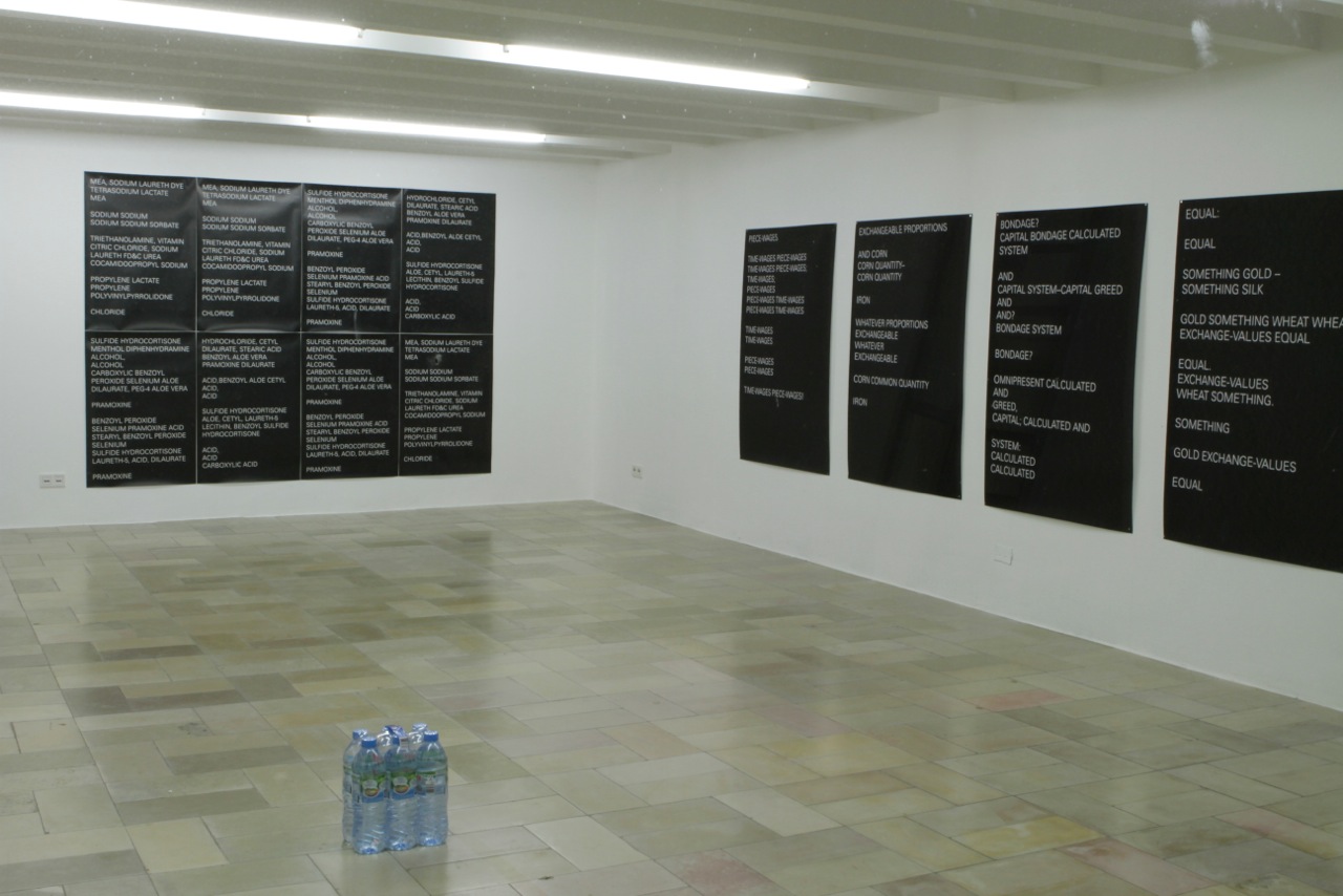 Im Kölnischen Kunstverein zeigt er Plakate mit „Gedichten“, deren Entstehung der Ausdruck eines ähnlichen Umbruchs ist. Vačkář füllt ein Computerprogram sowohl mit Sätzen aus „Das Kapital“ von Karl Marx als auch mit der Zusammensetzung von Shampoos, wie sie auf der Packung aufgeführt ist. Das Ergebniss sind „Gedichte“, deren Absurdität nicht zwischen den bedeutungsvollen Sätzen des „Kapitals“ und den chemischen Inhaltsstoffen der Shampoos unterscheidet. Begleitet sind diese „Gedichte“ von Wasserflaschen aus Plastik, wie man sie in jedem Geschäft kaufen kann. Durch eine Einsegnung von Pater Mennekes wurde deren Inhalt zu Weihwasser.