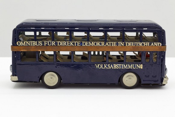 Polke, Rückriem, aber auch Franz Erhard Walther, Imi Knoebel, Johannes Stüttgen und Felix Droese beliefern die Galerie. Und man scheint viel Spaß dabei zu haben. Denn Humor, Ironie, ja Selbstironie sind oft dabei. So entwirft im Jahr seines Todes 1993 Achim Duchow – der noch zu entdecken ist – ein Multiple mit dem Titel „Beuys für Arme“: es besteht aus einer grauen Filzvorlage, auf der ein schon reichlich gammeliger Margarinebecher präsentiert wird. Duchows Spielzeugbus mit der Aufschrift „ Omnibus für direkte Demokratie in Deutschland. Volksabstimmung“ von 1990 braucht in der Nähe von Beuys keinen Kommentar, ebenso wenig wie die getrockneten Kuhfladen auf Unterlagen mit dem Titel „Reine Gesinnung“ von Droese aus dem Jahre 1991. Und die Bezeichnung eines Tuches, auf dem Kaviar klebt, als „Hungertuch“, wie es 1989 Herold tut, nähert sich schon dem Humor eines Martin Kippenberger.